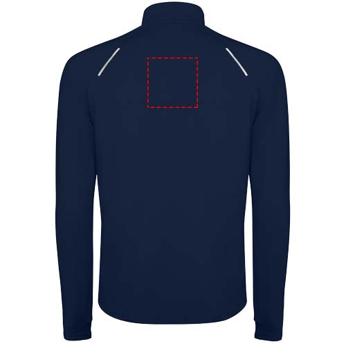 Felpa tecnica da uomo a maniche lunghe raglan. Collo con design a mezza zip invertita caratterizzato da dettagli riflettenti. Coperture per cuciture rinforzate. Polsini con aperture per i pollici. Dettagli catarifrangenti sul retro. Orlo posteriore leggermente più lungo di quello anteriore. Caldo tessuto interno spazzolato.