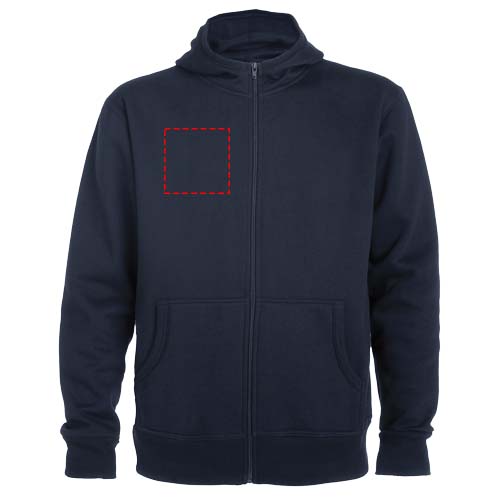 Felpa stile casual con cappuccio, collo alto e cerniera intera. Dettaglio a costine sul cappuccio e bordi sulle tasche. Tasca a marsupio. Polsini e giro vita a costine 2x2. Etichetta rimovibile. Il modello è alto 184 cm ed indossa una taglia L.