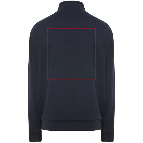 Maglia a collo alto con cerniera abbinata. Colletto interno abbinato con copri cuciture rinforzate. Polsini e giro vita in tessuto a costine 1x1. Etichetta rimovibile. Il modello è alto 185 cm ed indossa una taglia L, la modella è alta 168 cm ed indossa una taglia M.