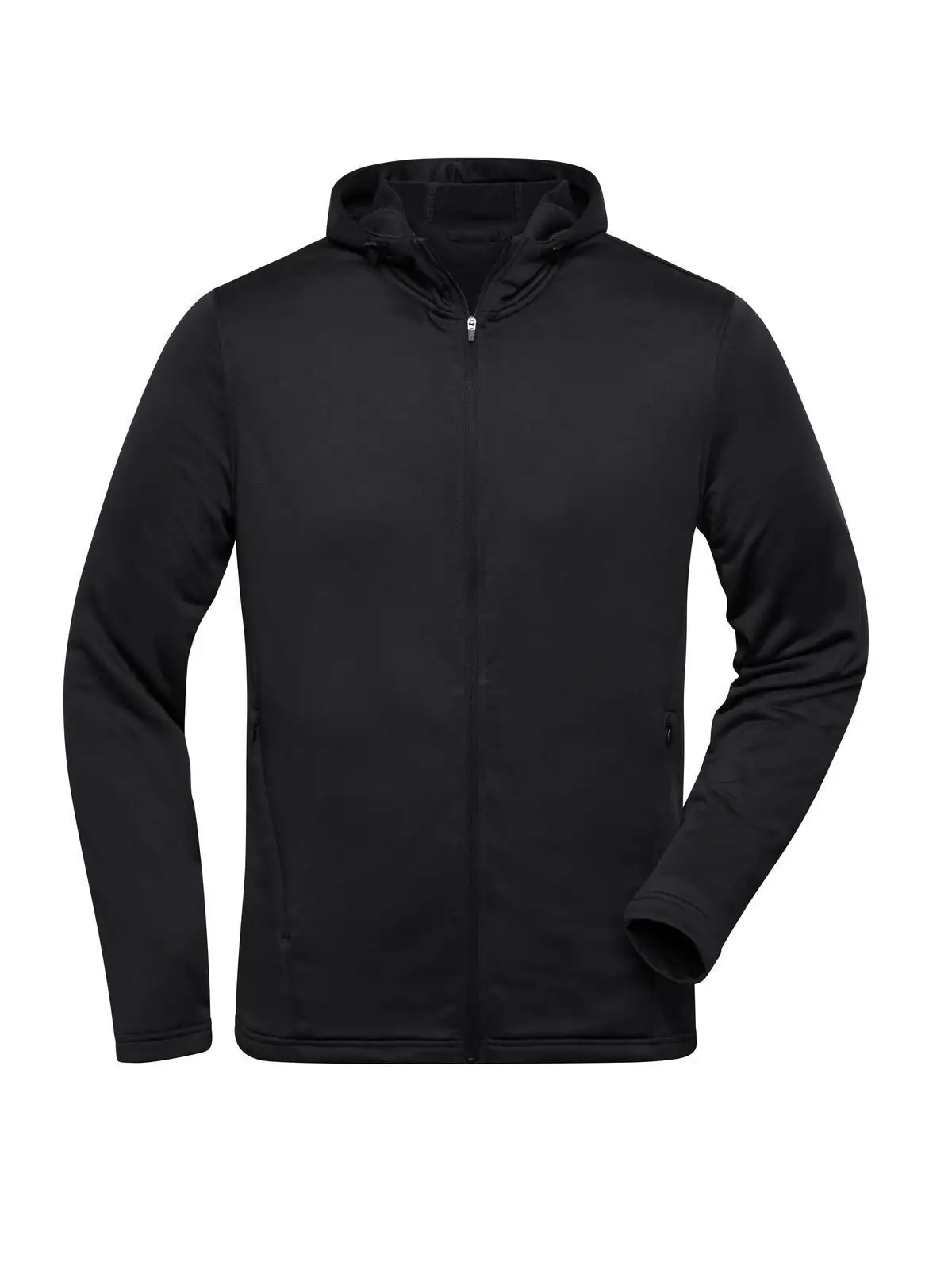 Felpa con cappuccio regolabile, tessuto french terry easy-care, due tasche laterali con zip, due tasche interne, zip YKK.