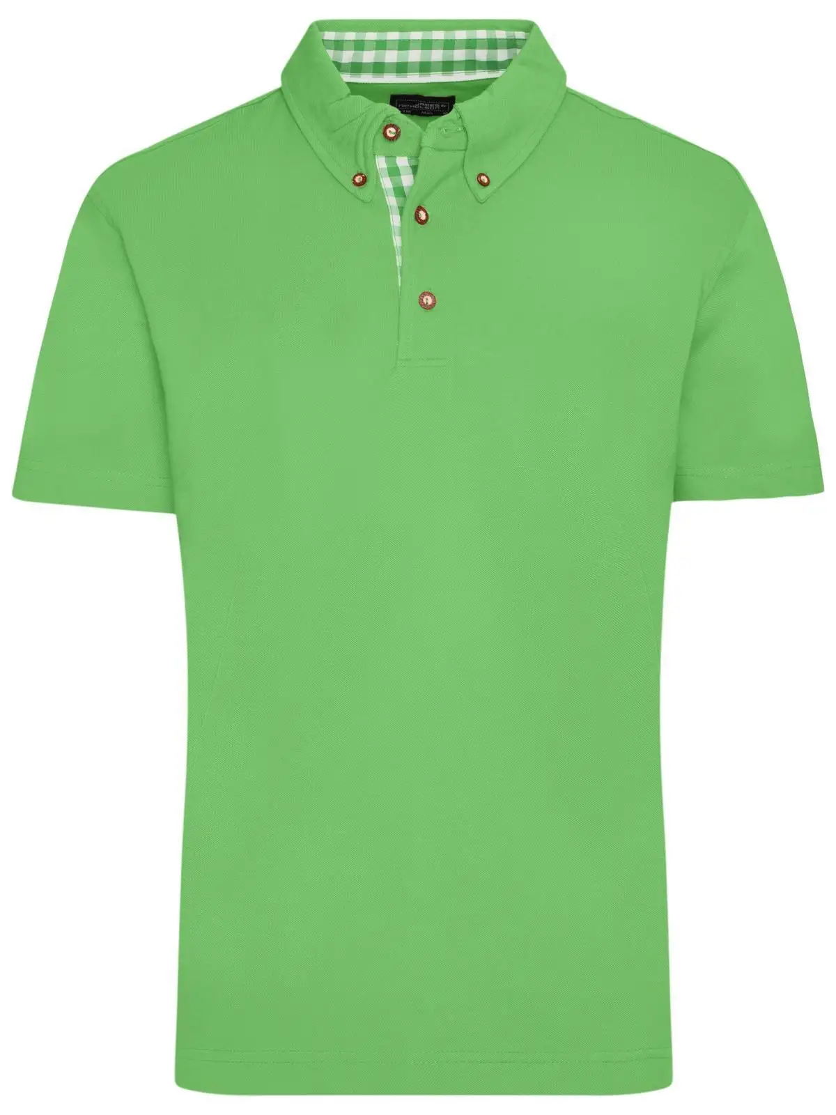 Polo classica nel costume tradizionale Ottimo tessuto piquè-collo dritto, L'interno del abbottonatura e nelle laterali fessure motivo a quadri, Bottoni in costume tradizionale fatti con materiale d'imitazione corno, Mezza luna tono su tono, colletto button-down finito, 3 bottoni, Tessuto esterno (195 g/m²), Manica corta, policromo, Spacchetti laterali.