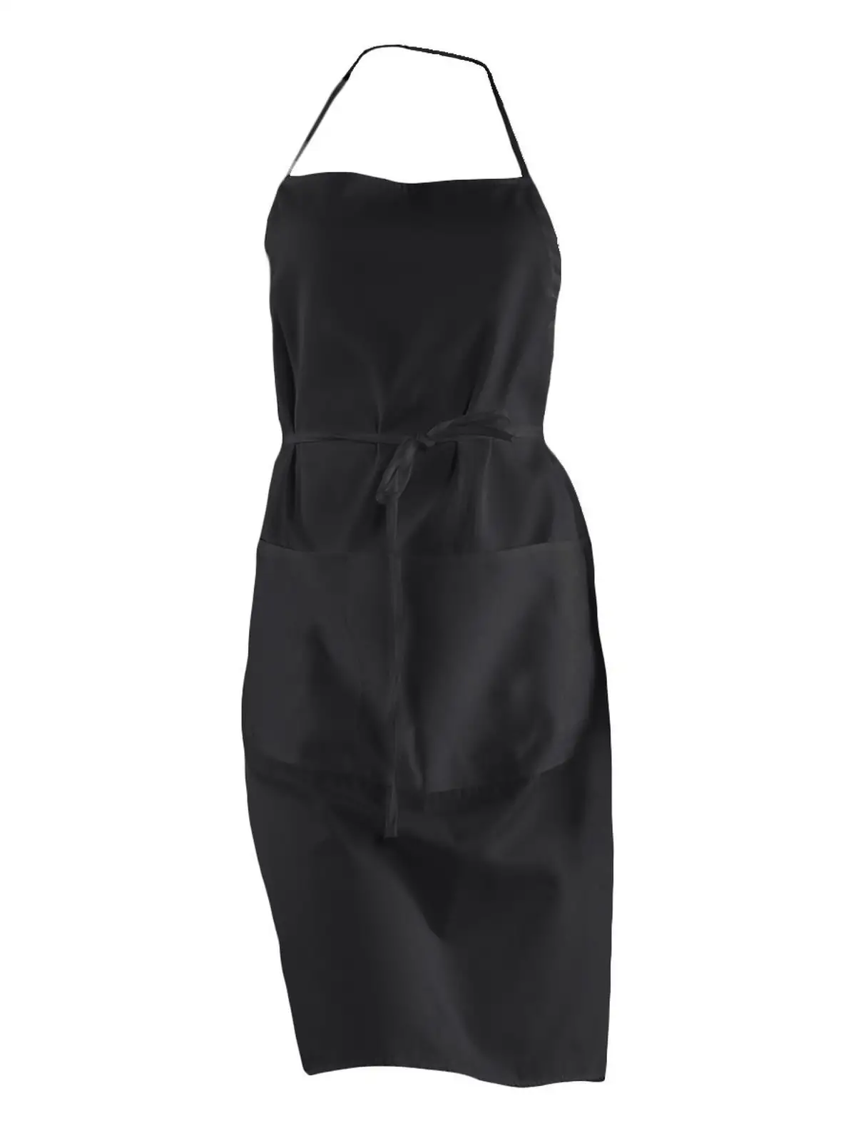 Grembiule con pettorina con laccio scorrevole, ampia tasca centrale con tre compartimenti separati. Lavabile a 40°C.