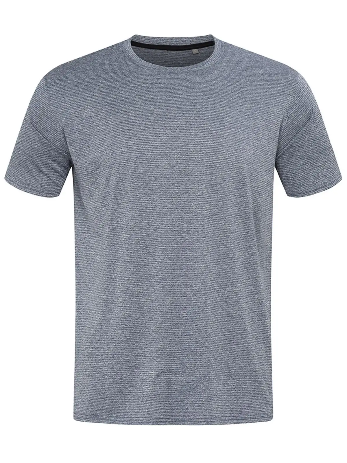 T-shirt sportiva da uomo, look moderno, filato a colori misti in tessuto funzionale eco-compatibile, prodotto con 4 bottiglie di plastica riciclate per ciascuna t-shirt, effetto mélange, collo stretto dello stesso materiale, nastro di rinforzo, cuciture laterali, etichetta della taglia intessuta nel colletto, etichetta di manutenzione a strappo nella cucitura laterale, lavabile a 40°C.