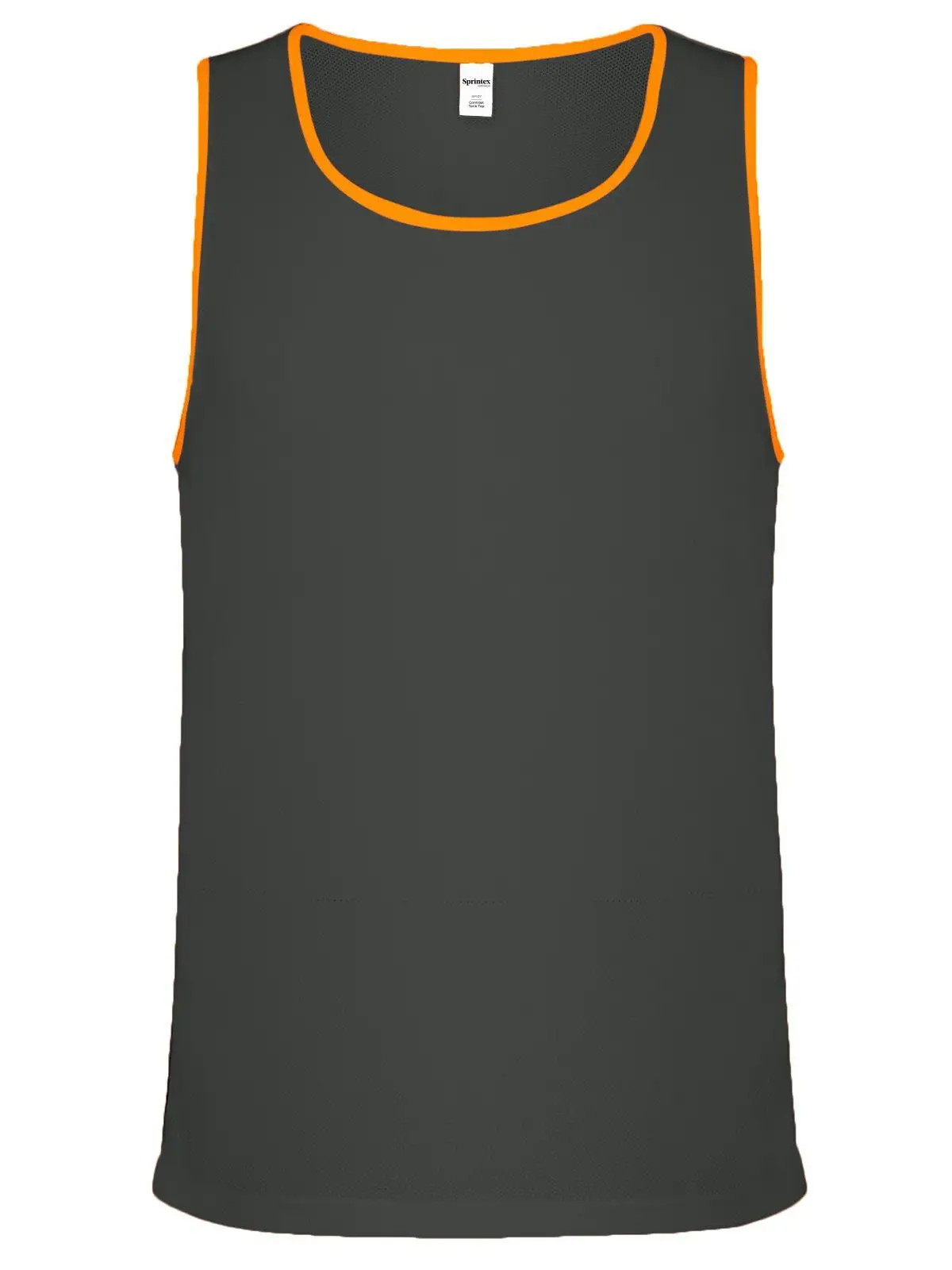 Canotta sportiva unisex, profondo girocollo, regolazione dell'umidità e asciugatura rapida, orlo su collo, giromanica e orlo inferiore di colore contrastante, struttura con cuciture laterali. Etichetta strappabile.
