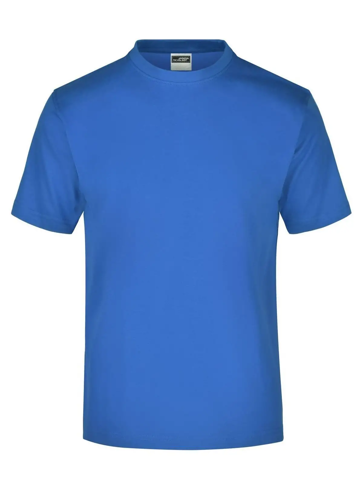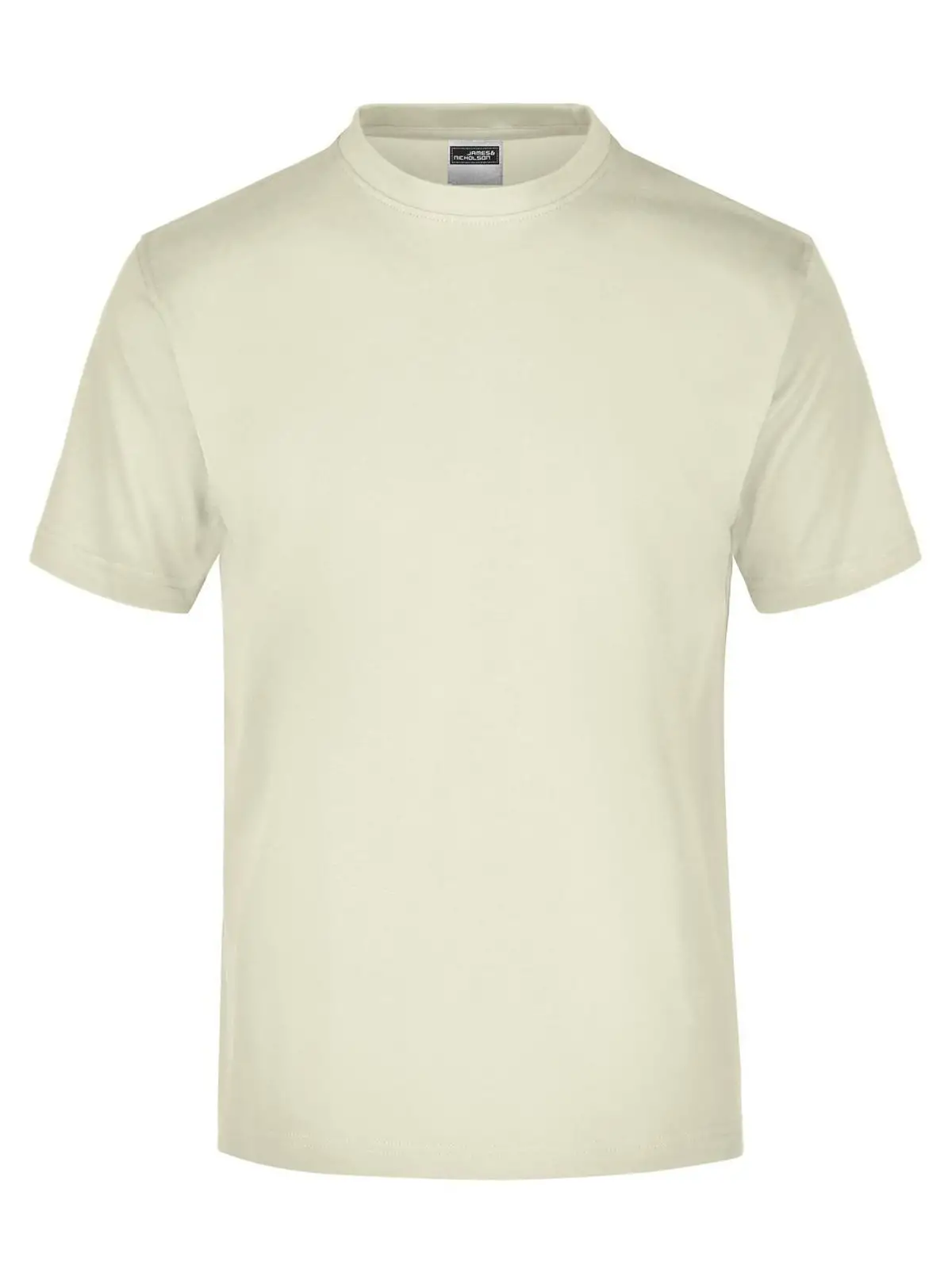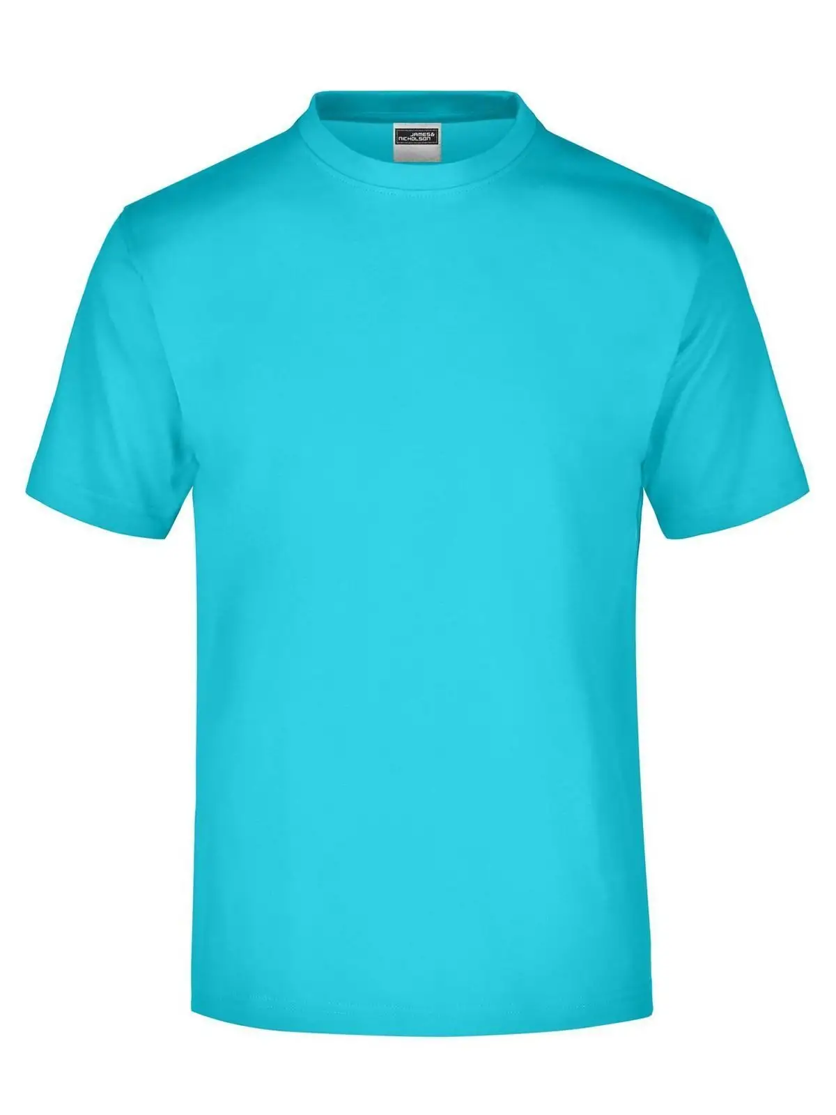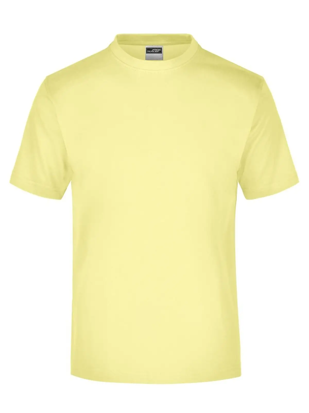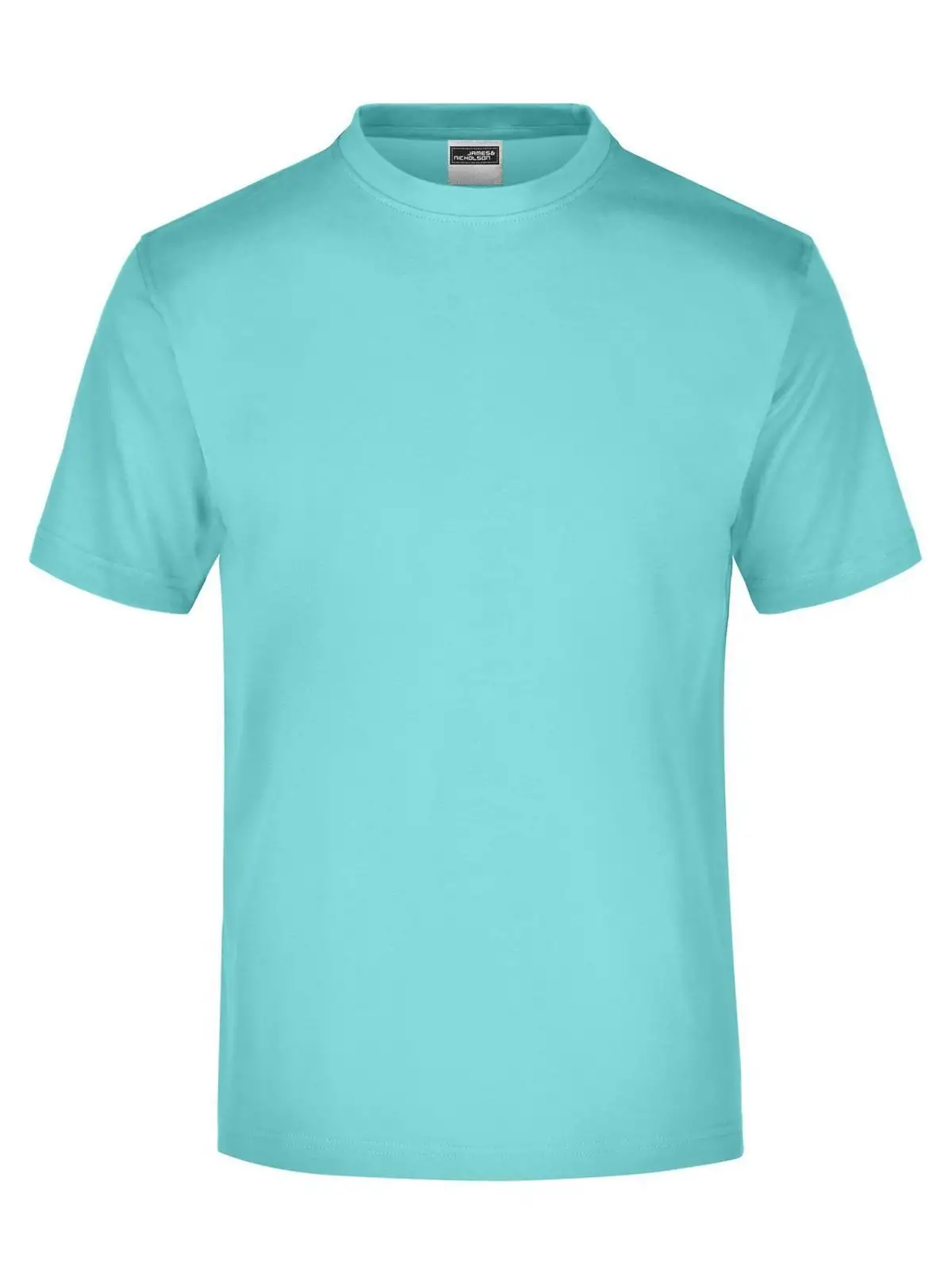 Comoda T-shirt in single jersey, collo rotondo con elastan, senza cuciture laterali, necktape, cuciture doppie sulle spalle, sul collo e sul giro manica.Tessuto esterno (150 g/m²). Manica corta,senza cuciture laterali