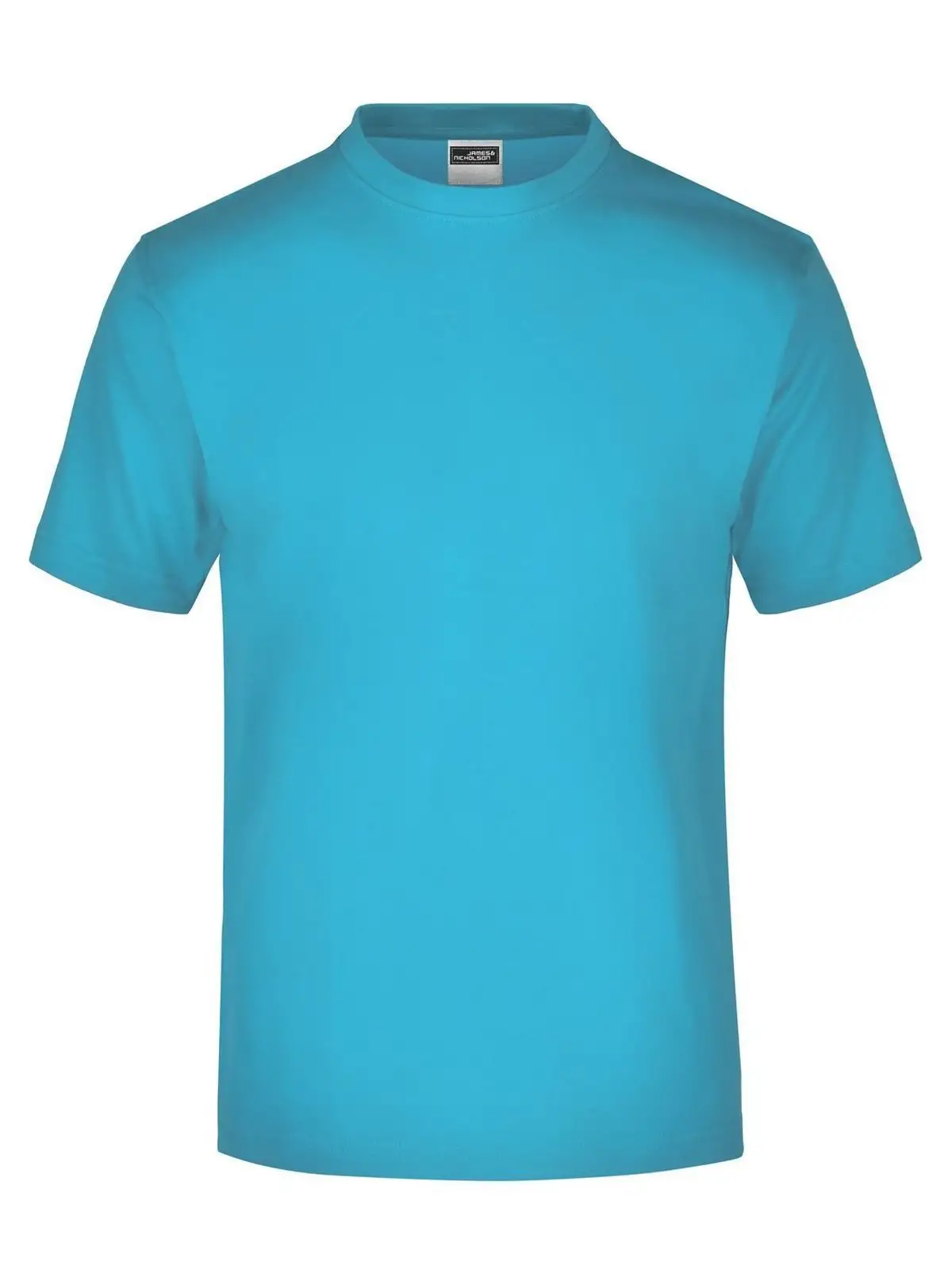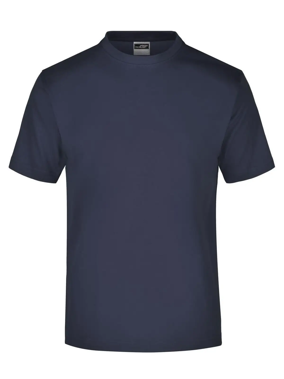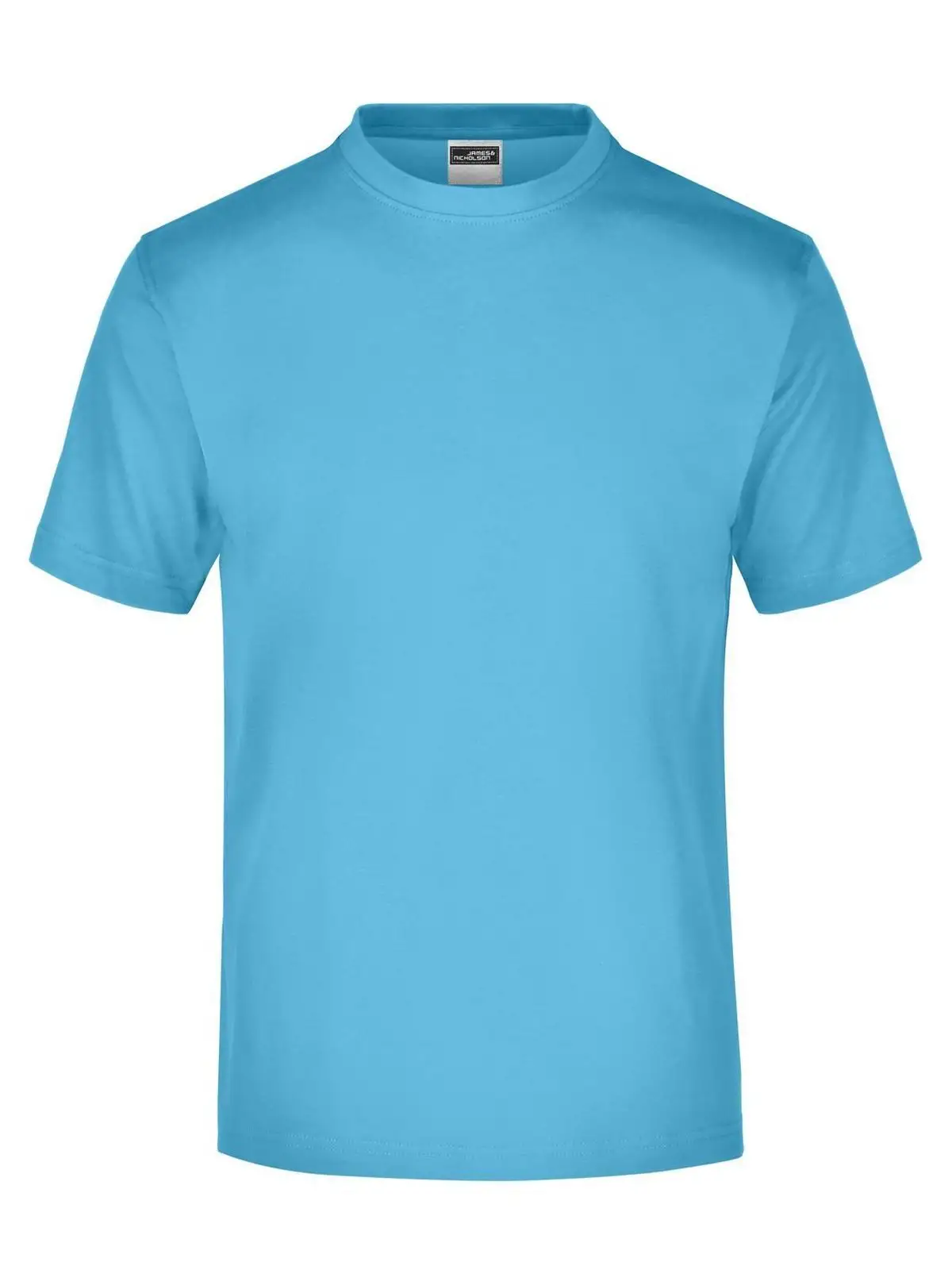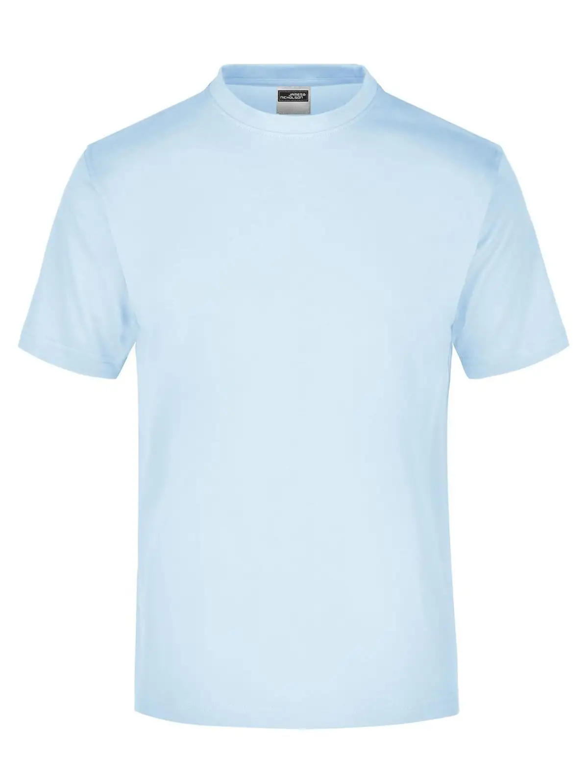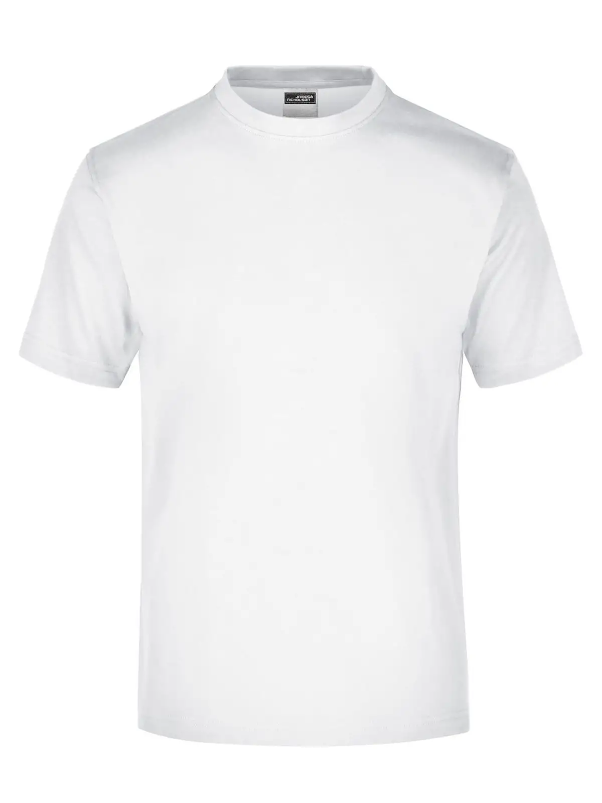 Comoda T-shirt in single jersey, collo rotondo con elastan, senza cuciture laterali, necktape, cuciture doppie sulle spalle, sul collo e sul giro manica.Tessuto esterno (150 g/m²). Manica corta,senza cuciture laterali