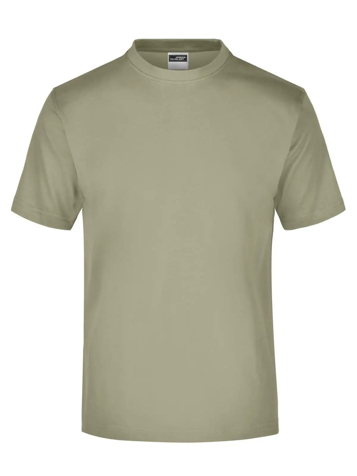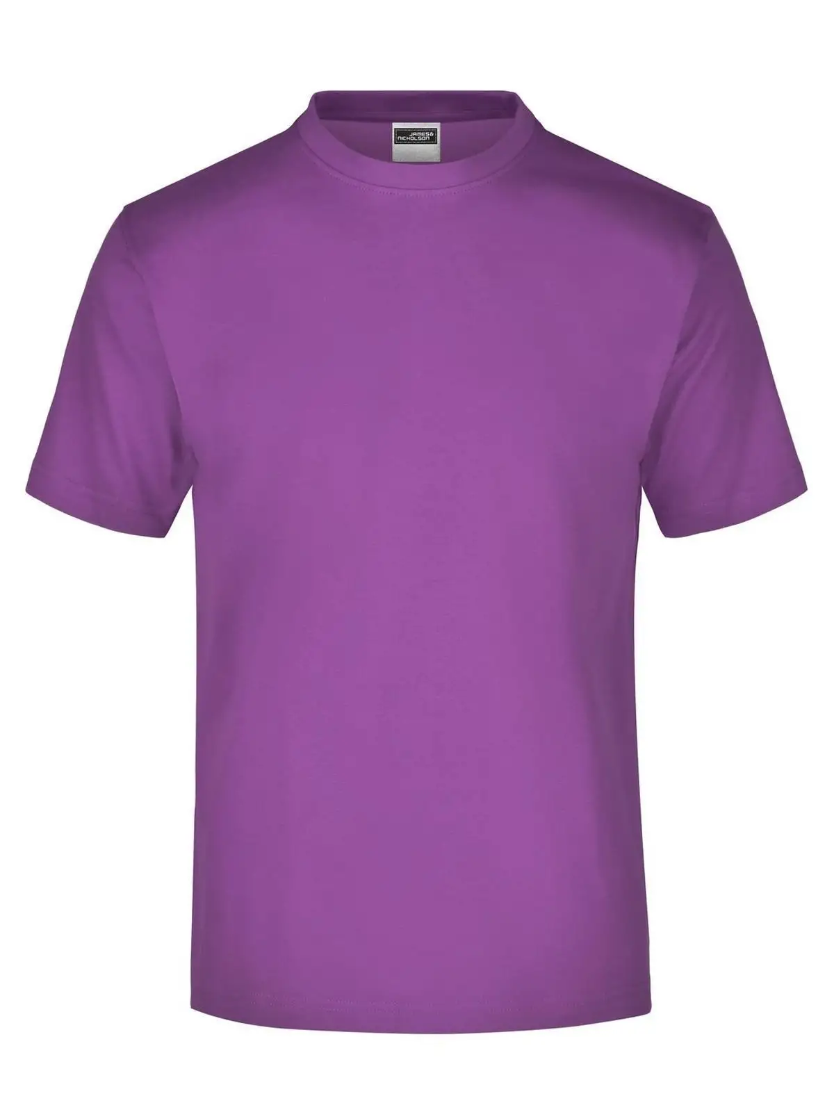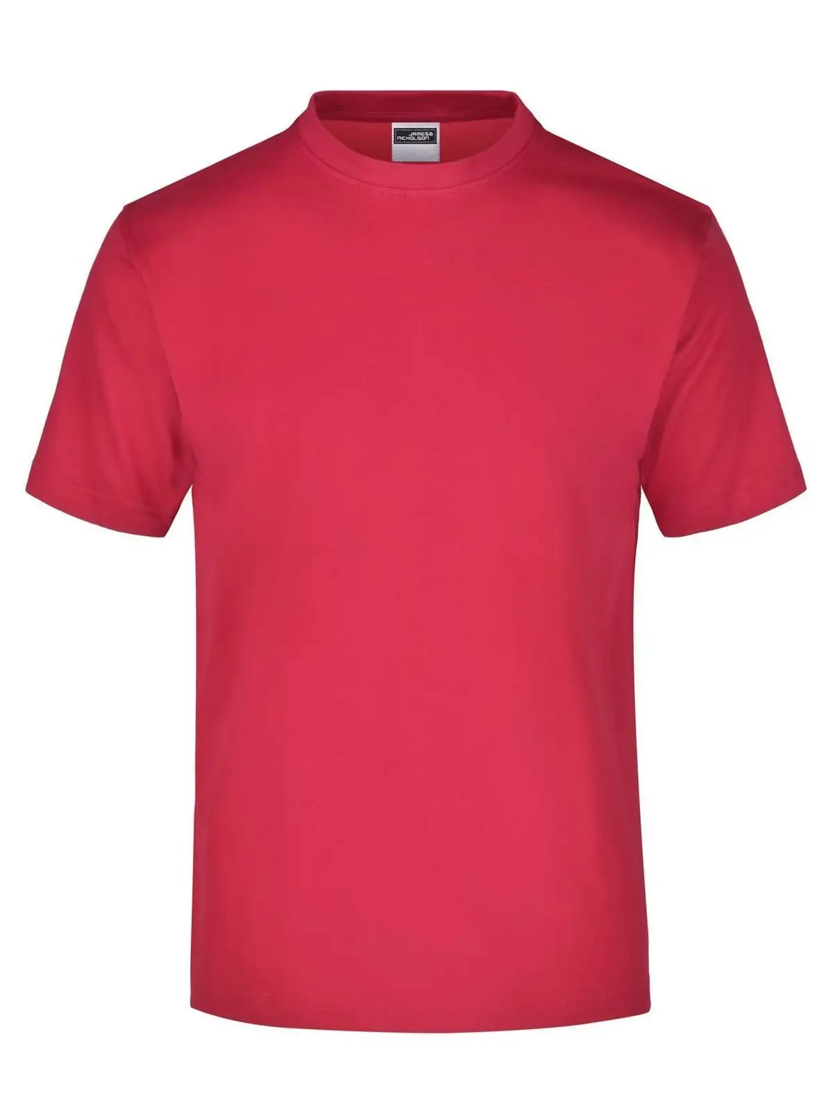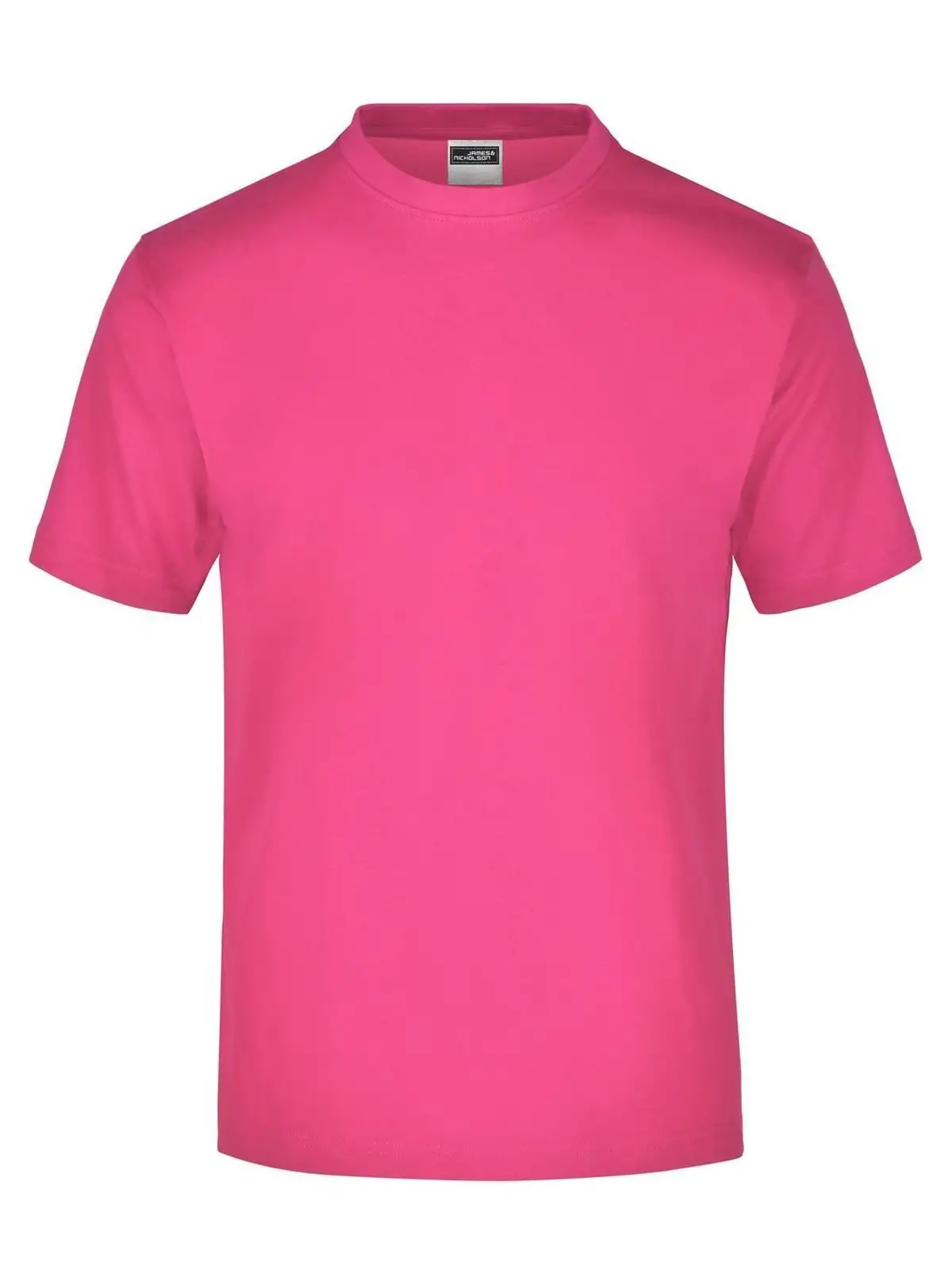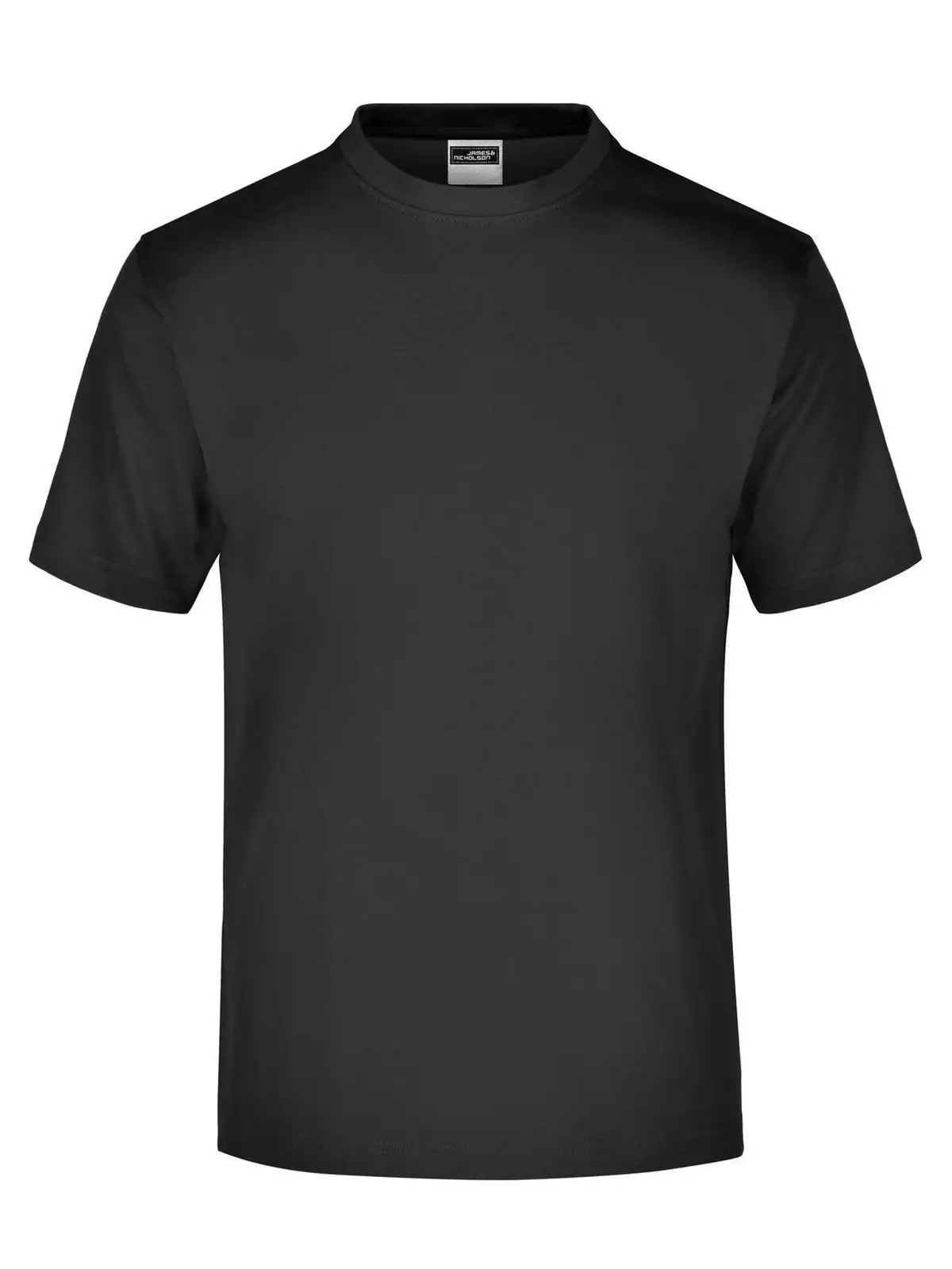 Comoda T-shirt in single jersey, collo rotondo con elastan, senza cuciture laterali, necktape, cuciture doppie sulle spalle, sul collo e sul giro manica.Tessuto esterno (150 g/m²). Manica corta,senza cuciture laterali