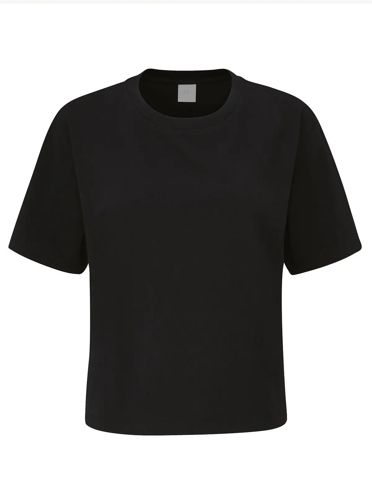 T-shirt donna manica corta, lunghezza cropped, vestibilità morbida, etichetta al collo strappabile, lavabile a 40°C.