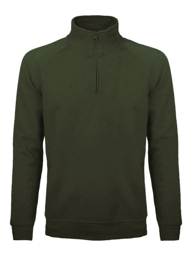 70% cotone, 30% poliestere. Tessuto PST: interno in poliestere ed esterno in 100% cotone. Felpa con maniche raglan, zip ¼ coperta, felpata internamente, struttura con cuciture laterali. Etichetta strappabile.