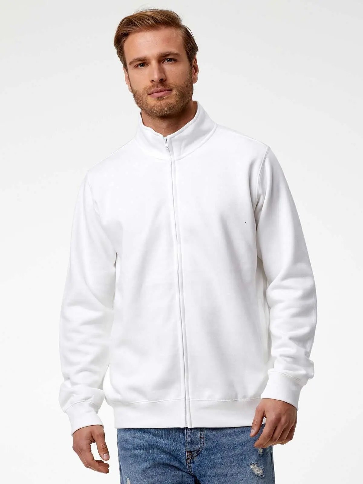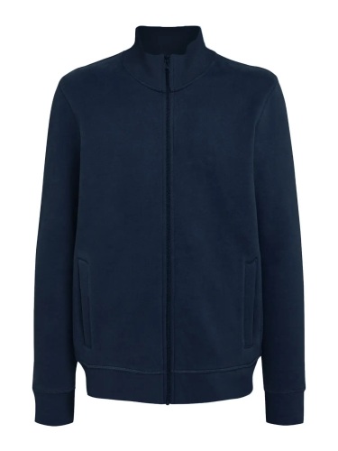 70% cotone 30% poliestere. Tessuto PST: interno in poliestere ed esterno 100% cotone. Felpa con maniche set-in, felpata internamente, zip intera, tasche a filetto, orlo inferiore e polsini con costina, struttura con cuciture laterali. Etichetta strappabile.