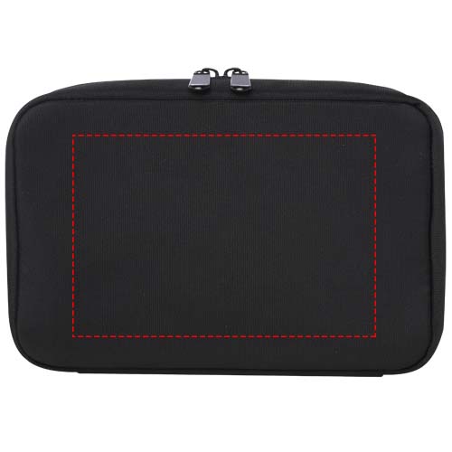 La custodia organizer Rise è una soluzione versatile e ibrida per organizzare tutti gli articoli tecnologici. Realizzata in resistente poliestere riciclato GRS 900D e fodera in velluto riciclato GRS, questa custodia rigida presenta due tasche-custodia, tasche in rete, cinghie elastiche sul fondo per i cavi e una tasca con cerniera per gli accessori aggiuntivi. Tutte le tasche garantiscono un'organizzazione ottimale e il guscio rigido protegge tutti i gadget di valore.