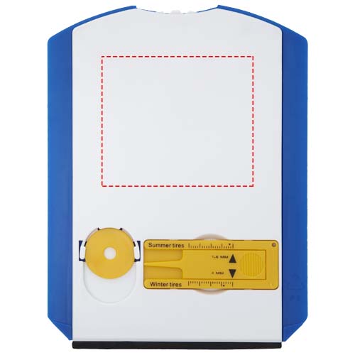 Disco orario con raschia ghiaccio, spazzola di gomma, moneta per carrello e misuratore di profondità del battistrada degli pneumatici. Il disco orario ha un'ampia area bianca sul retro per il logo. Il testo "Ora di arrivo" sulla copertura del disco è tradotto in olandese, inglese, francese, tedesco e italiano. Le normative possono variare a livello locale.