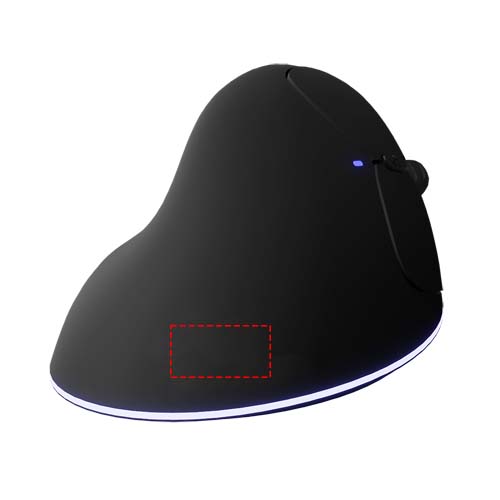 Mouse wireless ricaricabile (10,8 x 6,2 x 3 cm) in materiale sottoposto a trattamento antibatterico con logo luminoso. Il mouse può essere utilizzato fino a 8 ore con una sola ricarica. Il design ergonomico aiuta a ridurre lo sforzo e l'affaticamento della mano per un periodo di tempo prolungato. La distorsione del palmo della mano e del braccio è ridotta grazie all'angolo di 66°. Il logo luminoso stampato si illumina quando il mouse è carico e si spegne quando la batteria ha il 20% di capacità residua. Incluso cavo di ricarica USB da 0,70 metri realizzato in PET riciclato. Quando la batteria è completamente scarica, il mouse può comunque essere utilizzato con il cavo di ricarica. Fornito in una confezione regalo di colore nero (13,5 x 9,8 x 9 cm) con chiusura magnetica. Garanzia di 3 anni inclusa.
