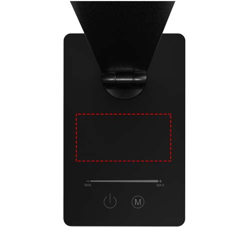 Lampada da scrivania multifunzionale con base di ricarica wireless da 10 W, che può essere decorata con un logo luminoso. Trattamento antibatterico sulla superficie in gomma. Modalità luce bianca e gialla, con diverse opzioni di luminosità.