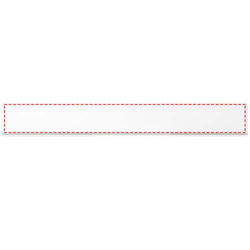 Resistente righello in plastica riciclata disponibile con marcature in pollici e in centimetri.