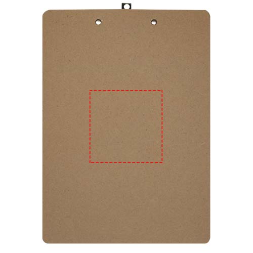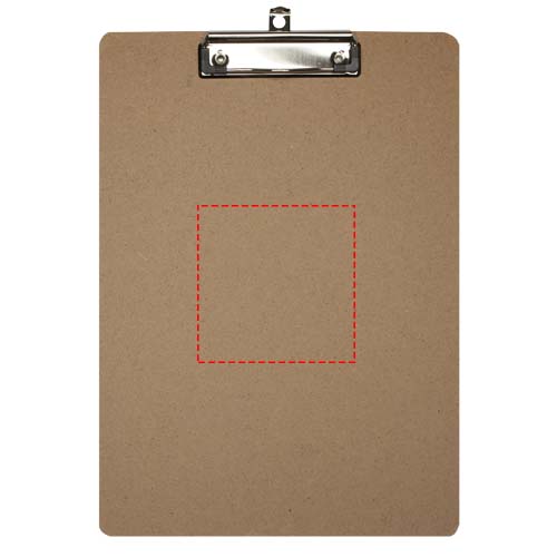 Pratico portablocco realizzato in MDF (pannello di fibra a media densità). La clip per mantenere fermo un foglio di carta è realizzata in ferro e plastica PP. Dimensione: 32 x 23 x 0,24 cm.