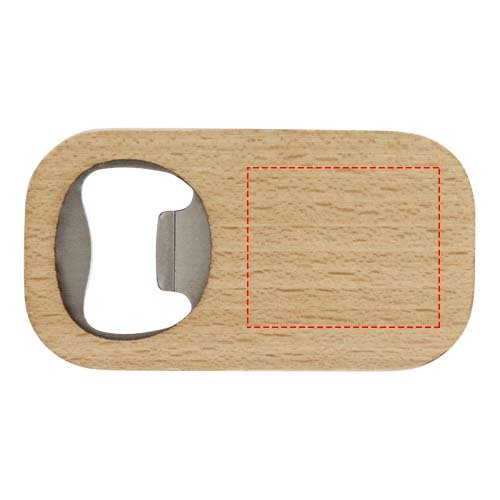 Apribottiglie in acciaio inossidabile con superficie in legno.