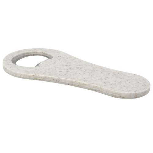 Apribottiglie in paglia di grano per aprire le bottiglie di birra, le bevande analcoliche, ecc. La paglia di grano è lo stelo che rimane dopo la raccolta dei chicchi di grano ed è un materiale che consente di ridurre la quantità di plastica utilizzata.