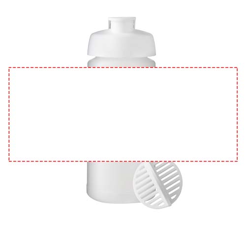 Borraccia sportiva a parete singola con sfera shaker per miscelare i frullati proteici. Coperchio ermetico con chiusura a flip. Capacità di 500 ml. Prodotto nel Regno Unito. Senza BPA. Conforme alla normativa EN12875-1 e lavabile in lavastoviglie.