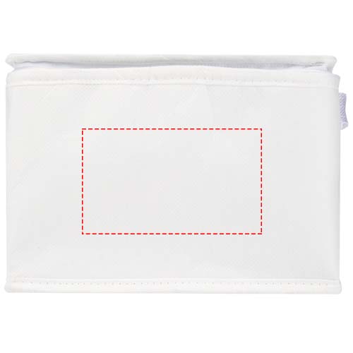 Realizzata in tessuto non tessuto PET riciclato, durevole e resistente agli strappi, la borsa termica Spectrum può contenere fino a 6 lattine ed è dotata di un manico in tessuto facile da trasportare. Capacità: 4 litri.