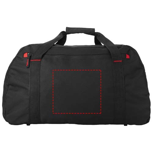 Ampia borsa da viaggio con ampio scomparto principale, tasca frontale con cerniera e tracolla regolabile.