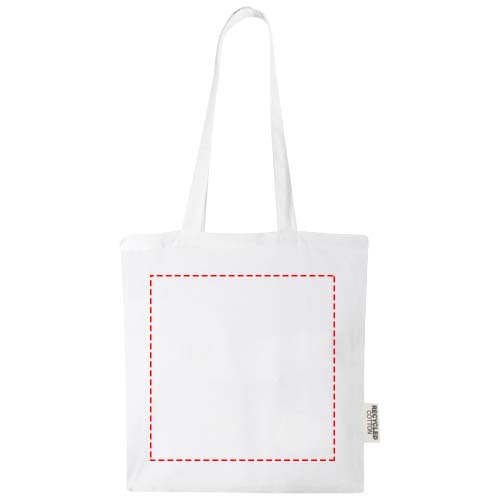 La tote bag Madras realizzata in cotone riciclato certificato 100% GRS è la borsa perfetta da regalare durante un evento, una conferenza oppure da utilizzare come borsa per la spesa. La densità del cotone di 140 g/m² rende questa borsa robusta, resistente e adatta per trasportare oggetti pesanti nello scomparto principale. Grazie ai manici lunghi 30 cm, questa tote bag è facile da trasportare. Anche i metodi di stampa disponibili per questa tote bag sono certificati GRS, assicurando che l'intera catena di fornitura sia trasparente e certificata. Realizzata in India. Resistenza fino a 5kg di peso.