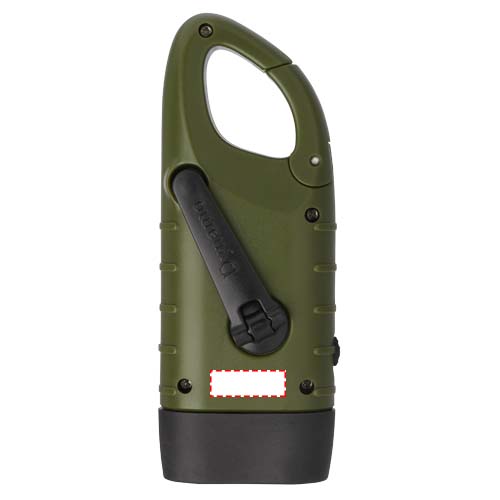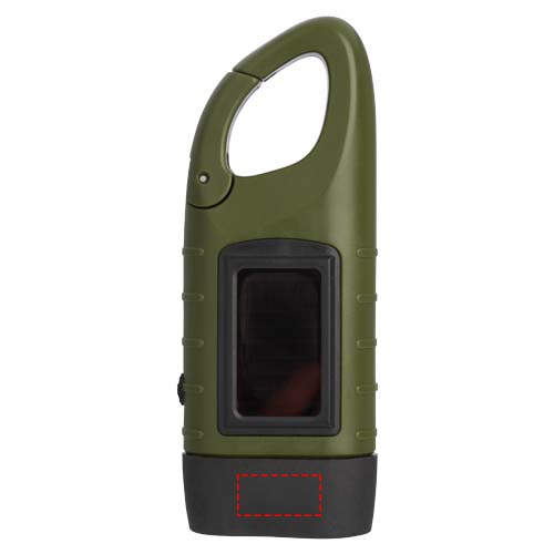 Torcia a dinamo solare con moschettone in plastica riciclata Helios