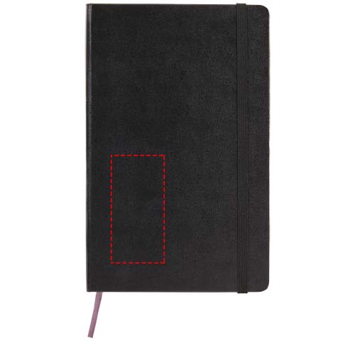 Il blocco note con copertina rigida Moleskine Classic L (13x21 cm) presenta una rilegatura in cartoncino con angoli arrotondati, carta priva di acidi, un segnalibro e una chiusura con elastico. Sulla prima pagina è presente una nota in cui scrivere la ricompensa per chi ritrova il blocco note in caso di smarrimento. Fissata alla copertina posteriore si trova una tasca interna espandibile che contiene la storia di Moleskine. Questa tasca può essere utilizzata per contenere fogli sparsi e appunti. Contiene 240 pagine bianche di color avorio. Disponibile in un'ampia gamma di vivaci colori alla moda.
