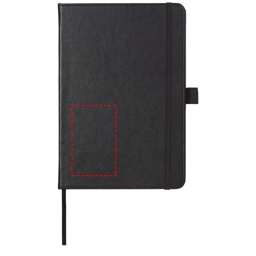 Taccuino con design esclusivo (formato A5) caratterizzato dalla carta da 80 g/m², 80 fogli a righe di color crema con tasca posteriore interna e porta penna. Confezionata in una scatola regalo "LUXE".