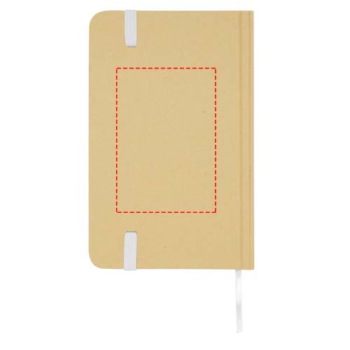 Il blocco note con copertina rigida in cartone riciclato formato A6 Reed con angoli arrotondati non è solo un un pratico accessorio per l'ufficio, ma anche un'ottima occasione per promuovere il marchio. Il blocco note presenta 96 fogli bianchi di carta da 70 g/m² e una copertina morbida. Dispone di chiusura elastica e nastro segnalibro.