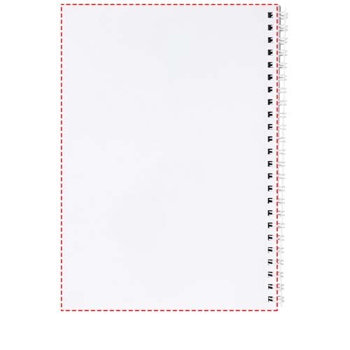 Blocco note spiralato di formato A5 Desk-Mate®. La versione standard include 50 fogli di carta bianca da 80 g/m2, una copertina frontale in carta lucida (250 g/m²) ed una sovra copertina da 450 micron in polipropilene trasparente. Spirale nera o bianca. Disponibile anche in versione da 100 fogli. Puoi personalizzare le pagine di questo versatile blocco note con qualsiasi design - sia che tu voglia fogli a righe, a quadretti o puntinati - tutto è possibile!