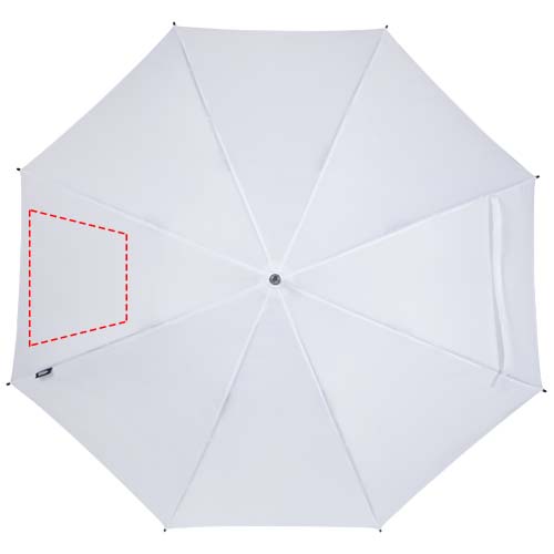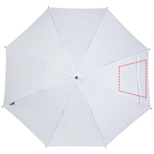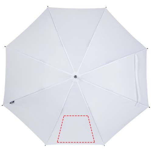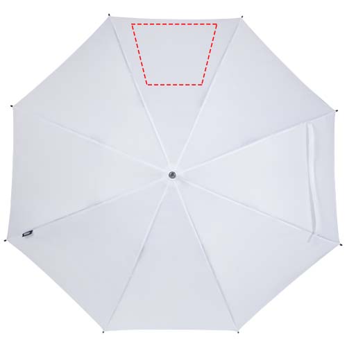 Ombrello ad apertura automatica da 23” con telo in poliestere pongee in PET riciclato. Presenta una robusta asta in metallo, un telaio in fibra di vetro e un comodo manico in EVA con estremità in colore abbinato. Ampia superficie di stampa presente su ogni pannello.
