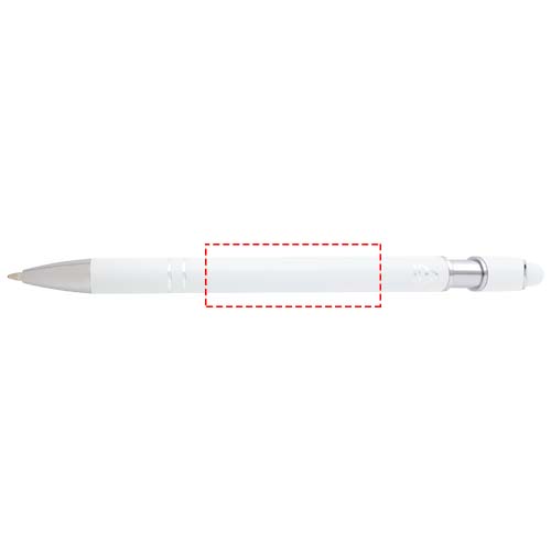 La penna a sfera Kish con finitura argentata, presenta un fusto realizzato in alluminio riciclato e uno stilo tattile in silicone. L'alluminio riciclato riduce la quantità di rifiuti nelle discariche e aiuta a conservare le risorse naturali con l'obiettivo di ridurre le emissioni di gas serra. Colore dell'inchiostro: Blu. Capacità di scrittura: 800 metri. Dimensione del pennino: 1,0 mm.