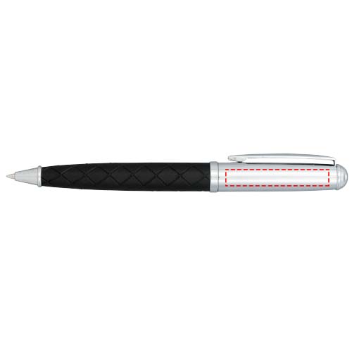 Penna a sfera dal design esclusivo con serbatoio inferiore con trama a reticolo trasversale rivestito in eco pelle. Comprende la ricarica di colore nero di qualità premium e confezionata in una scatola regalo "LUXE" (16 x 4,5 x 2,5 cm).