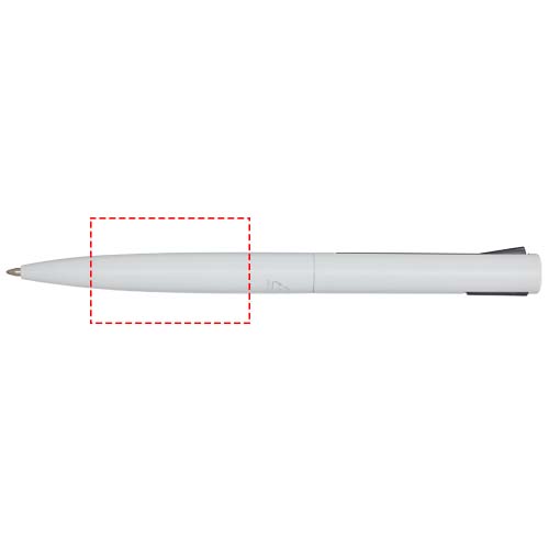 Penna a sfera con fusto superiore realizzato in plastica riciclata e parte inferiore realizzato in alluminio riciclato. La clip è realizzata in ferro. Colore dell'inchiostro: Blu. Capacità di scrittura: 1000 metri. Dimensione del pennino: 1,0 mm.