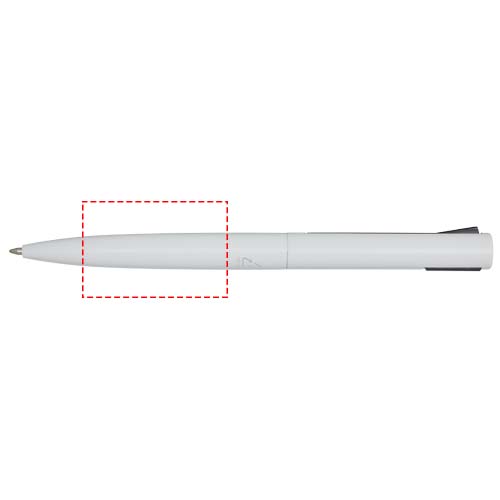 Penna a sfera con fusto superiore realizzato in plastica riciclata e parte inferiore realizzato in alluminio riciclato. La clip è realizzata in ferro. Colore dell'inchiostro: Nero. Capacità di scrittura: 1000 metri. Dimensione del pennino: 1,0 mm.