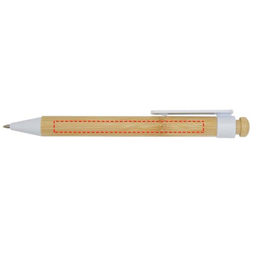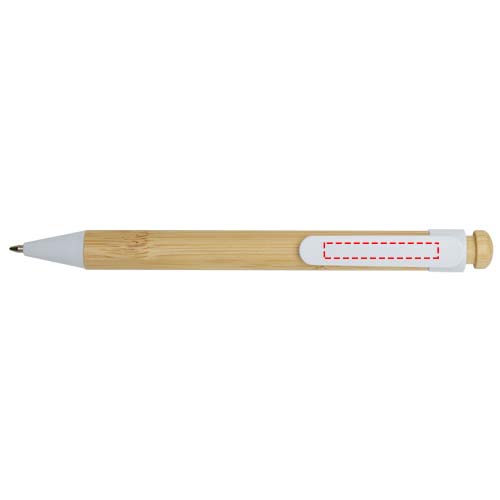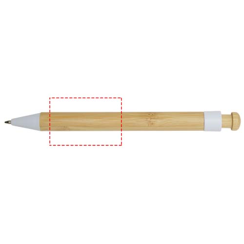 Penna a sfera con clip e punta in plastica riciclata, mentre il pulsante e il fusto sono in bambù. Colore dell'inchiostro: Nero. Capacità di scrittura: 1000 metri. Dimensione del pennino: 1,0 mm.
