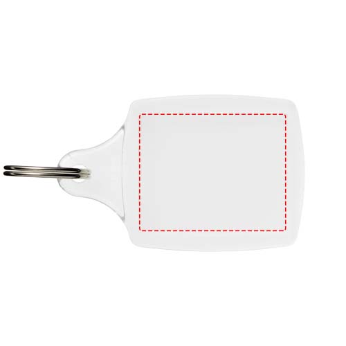 Portachiavi A5 trasparente con anello in metallo diviso. Progettato per contenere un inserto in carta o una foto formato tessera. Dimensioni dell'inserto stampato: 4,5 cm x 3,5 cm.