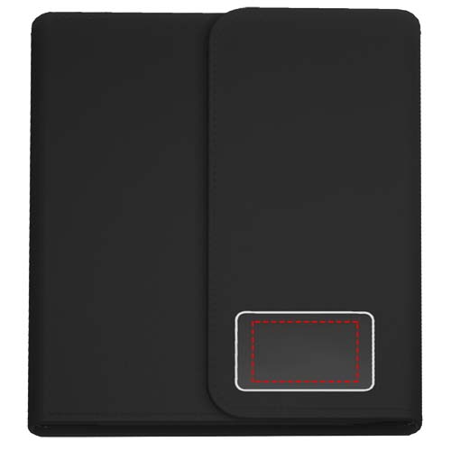 Il portadocumenti con blocco note formato A5 con logo luminoso è anche provvisto di power bank integrato da 4000 mAh per una ricarica wireless da 5 W. Il portadocumenti ha le dimensioni di 16,5 x 23,5 x 2 cm quando è chiuso. Il blocco note contiene 30 pagine realizzate in carta proveniente da fonti ecosostenibili, responsabili dal punto di vista ambientale e sociale. Il portadocumenti è realizzato in plastica di poliuretano con una finitura in microfibra e dispone di un cavo di ricarica 3 in 1 (tipo C, micro USB, iPhone) realizzato in PET riciclato. Il logo luminoso è applicato sulla chiusura magnetica che si trova sulla parte anteriore. Il portadocumenti è fornito in una confezione regalo di colore nero (24 x 20 x 3,9 cm). Garanzia di 3 anni inclusa.