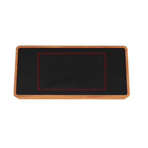 Power bank in legno d’acero con ricarica wireless da 10.000 mAh e finitura in gomma antibatterica. Il power bank è dotato di doppia uscita USB da 2 A ed è compatibile con i dispositivi abilitati Qi. Fornito con un cavo di ricarica 3 in 1 realizzato in PET riciclato. Con confezione regalo in carta kraft riciclata (18,5 x 10 x 2,5 cm) con chiusura magnetica. Garanzia di 3 anni inclusa.