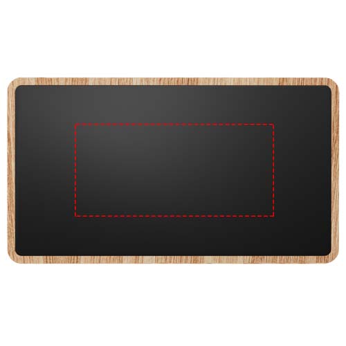 Power bank da 5000 mAh realizzato in legno di rovere francese con una finitura soft-touch. Il power bank dispone di un connettore input/output Type-C e può essere utilizzato anche come stazione di ricarica wireless per dispositivi compatibili con Qi. Il logo si illumina per 30 secondi quando il power bank viene maneggiato e rimane acceso durante la ricarica. Fornito con un cavo di ricarica 3 in 1 in rPET e una confezione regalo in carta riciclata (16,5 x 8 x 2,7 cm) con chiusura magnetica. Garanzia di 3 anni inclusa.