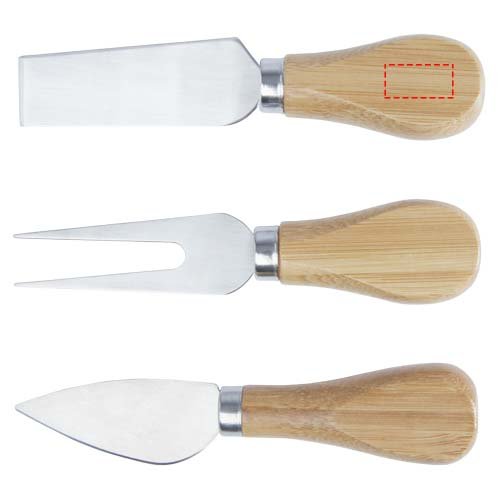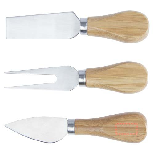 Set per il formaggio in bambù composto da un tagliere (30 x 7,6 cm), due coltelli (12,5 x 2,5 cm e 12,5 x 2,7 cm) e una forchetta (13,5 x 2,4 cm). Sul lato del tagliere è presente una striscia magnetica su cui possono essere attaccati gli utensili: potrai così servire il formaggio con stile. Il bambù utilizzato è ottenuto e prodotto in base a standard ecosostenibili.