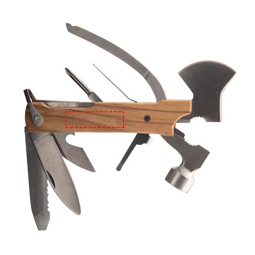 Set di 2 multi-utensili: Un martello/pinza 10 in 1 e un potatore 6 in 1, in acciaio inossidabile e legno d'ulivo italiano. Fornita in confezione regalo in cartone riciclato.