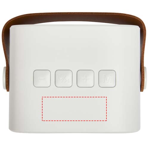 Lo speaker wireless Diya è realizzato in plastica riciclata ed è dotato di un cinturino in pelle PU per trasportarlo facilmente. Offre 3 watt di suono potente e supporta la riproduzione di MP3 tramite Micro SD. Goditi una connettività semplice con l'opzione line-in e ricarica senza fatica grazie alla porta di ricarica di Tipo-C. Questo speaker offre circa 3 ore di riproduzione al massimo volume e una ricarica completa in circa 2 ore.