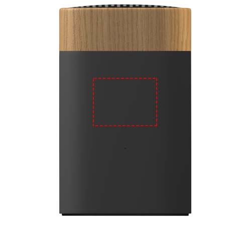 Speaker Bluetooth® wireless da 5 W in legno d'acero con logo luminoso e trattamento antibatterico. Doppia uscita audio per una qualità sonora senza pari per uno speaker di queste dimensioni. Dotato di un microfono incorporato e funzione di chiamata in conferenza. Capacità: 800 mAh - 3,7 V. Frequenza: 50 Hz - 20 KHz. Uscita: 1 x 5 W. S/N: 65 db. Impedenza: 4 Ω. Bluetooth® JL 4.2. Peso netto: 152 grammi. Dimensione: 91 x 58 x 58 mm. Fornito in una confezione regalo con chiusura magnetica, realizzata in carta riciclata.