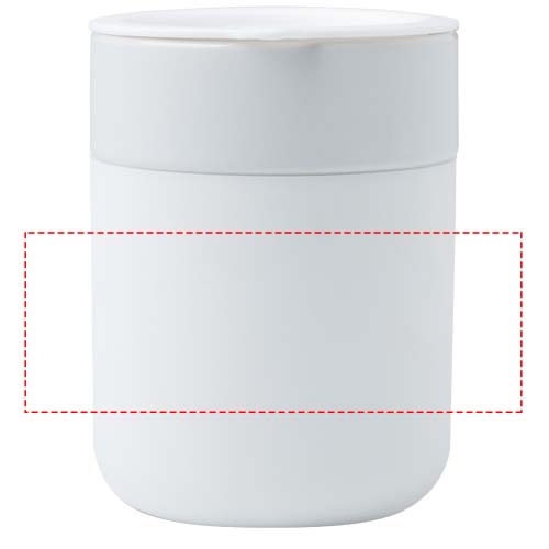 Il thermos in ceramica a parete singola Java ha un design semplice e pratico, per l'uso quotidiano, ed è dotato di un involucro in silicone per renderne confortevole la presa. Coperchio con protezione antischizzo. Capacità: 330 ml.