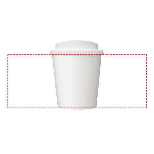 Bicchiere termico a doppia parete con coperchio twist e stampa full color su tutto il prodotto. Realizzato in materiale riciclato al 65% (tazza riciclata e interno nero), con un coperchio in plastica standard. Il bicchiere è completamente riciclabile, lavabile in lavastoviglie e adatto al forno a microonde. Capacità: 250 ml. Senza BPA. Confezionato in un sacchetto idoneo al compostaggio domestico. Prodotto nel Regno Unito.