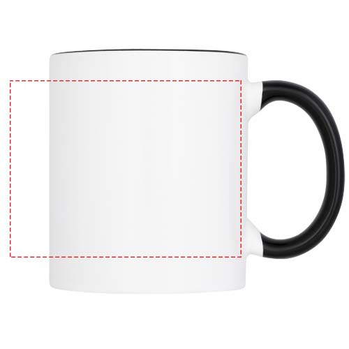 Questa tazza in ceramica dal design classico ha uno speciale rivestimento per sublimazione. La tazza ha l'interno dello stesso colore del manico. Lavabile in lavastoviglie in accordo alla normativa EN12875-1 (per almeno 125 cicli di lavaggio) per qualsiasi metodo di personalizzazione. Capacità di 330 ml. Presentata in una scatola bianca di cartone.