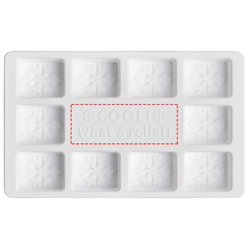 Il vassoio per cubetti di ghiaccio offre un modo originale per presentare il proprio logo o un messaggio su un prodotto molto utile. Il messaggio può essere aggiunto all'area centrale e/o alla base dello stampo di ogni cubetto tramite stampaggio a rilievo per una finitura tattile.