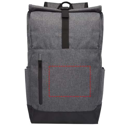 Zaino per portatile da 15,6" con scomparto imbottito, spallacci imbottiti regolabili, scomparto principale con cerniera e chiusura superiore roll-up, 2 maniglie per il trasporto e tasca frontale con cerniera. Certificato GRS.